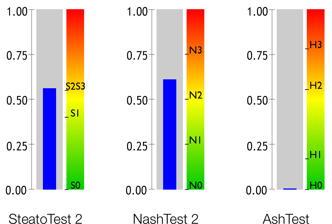 NASH-FibroTest = FibroTest + SteatoTest 2 + NashTest 2 + ActiTest + AshTest